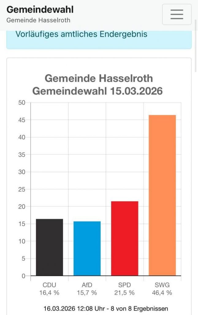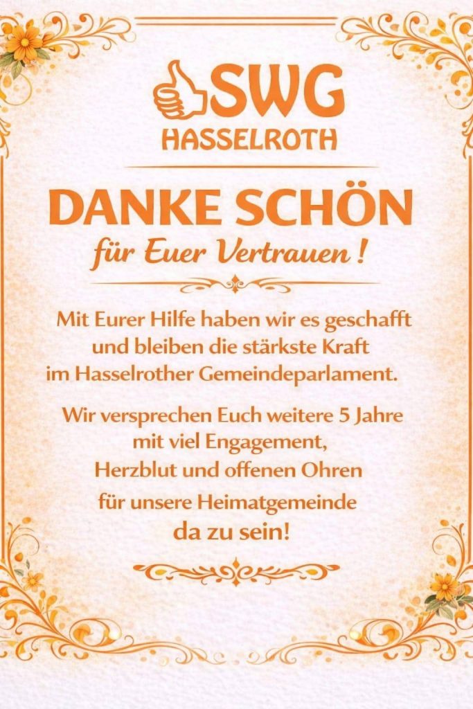 Dank Euch bleiben wir laut dem vorläufigen Ergebnis die stärkste Kraft im Hasselrother Gemeindeparlament – das macht uns stolz und wir sind uns dieser Verantwortung bewusst.