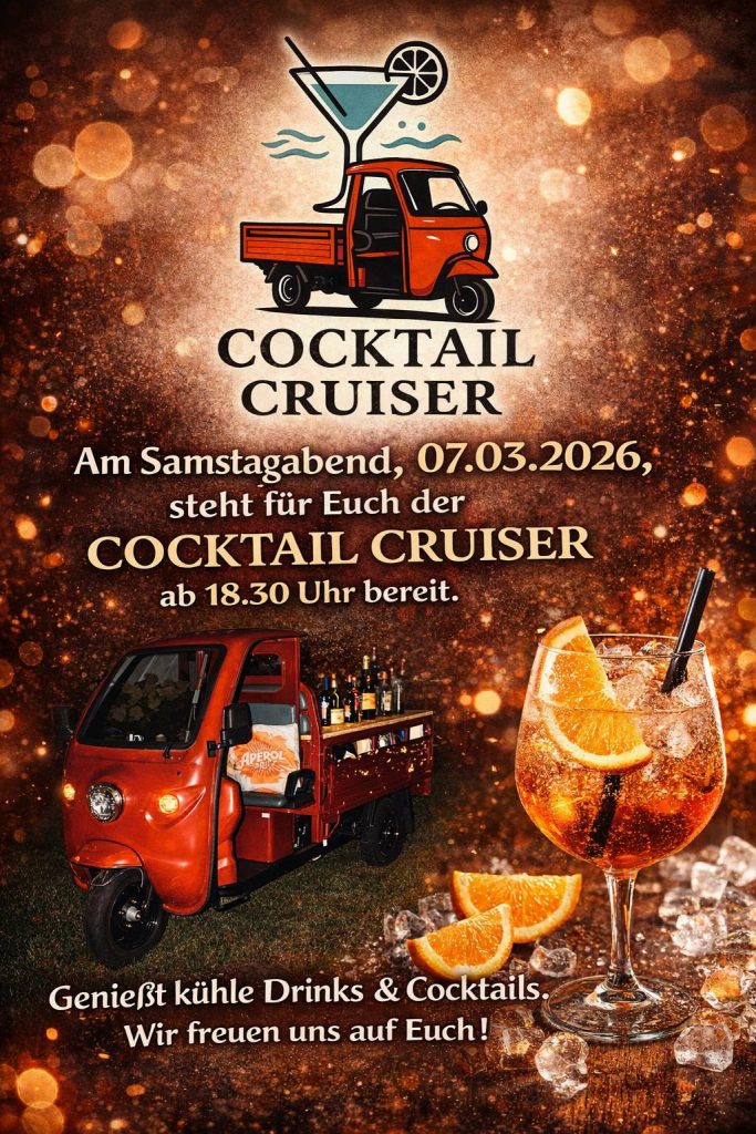 Als weiteres Highlight können Sie ab⏰️18.30 Uhr kühle Drinks & Wein vom Cocktail-Cruiser genießen.
