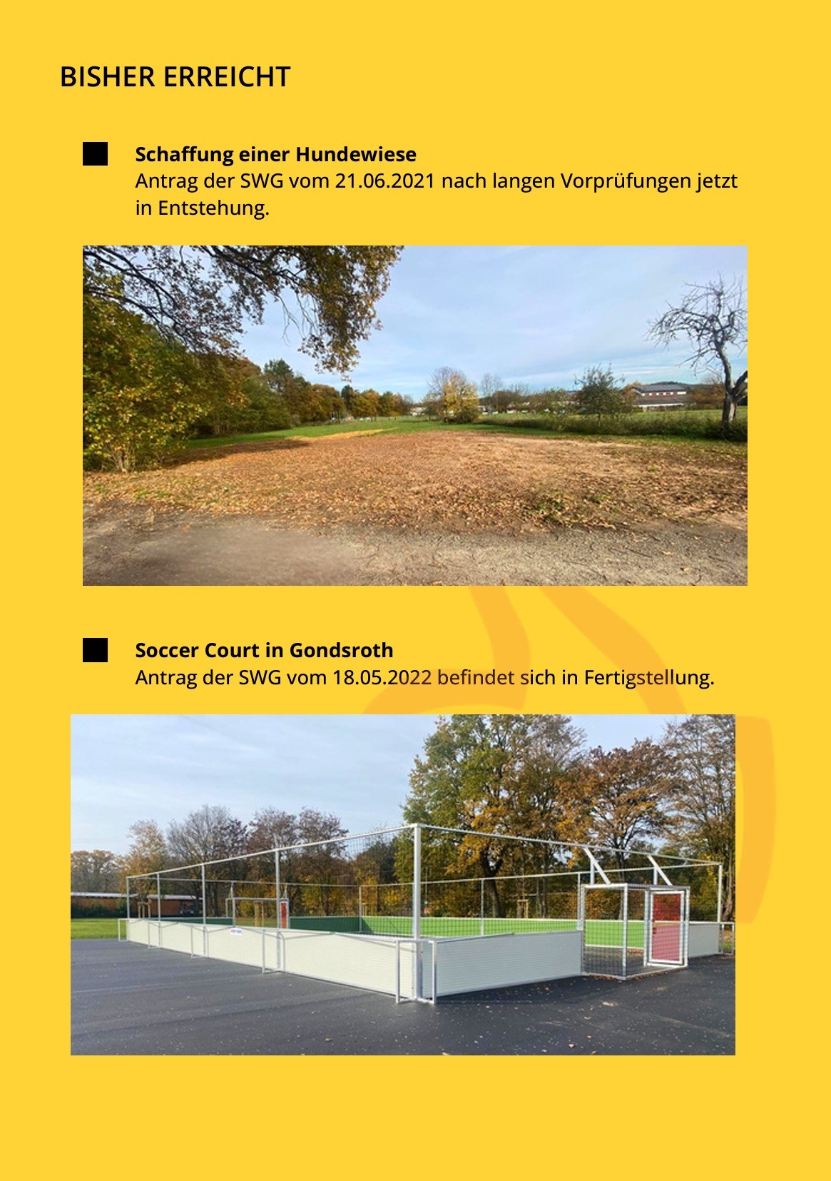 Auch wenn die beiden Sitzungen schon einige Zeit zurückliegen (August 2022),gibt es viel positives über unsere diversen SWG-Anträge zu berichten :