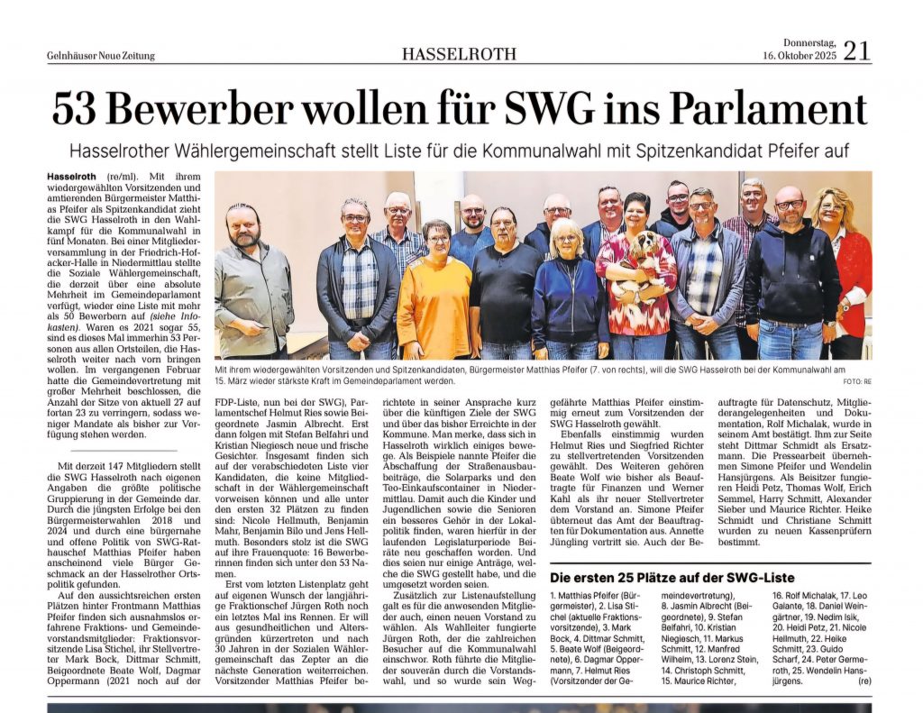 Weitere Informationen über die Aktivitäten der SWG Hasselroth sind auf Facebook, Instagram oder unter www.swg-hasselroth.de zu finden.
