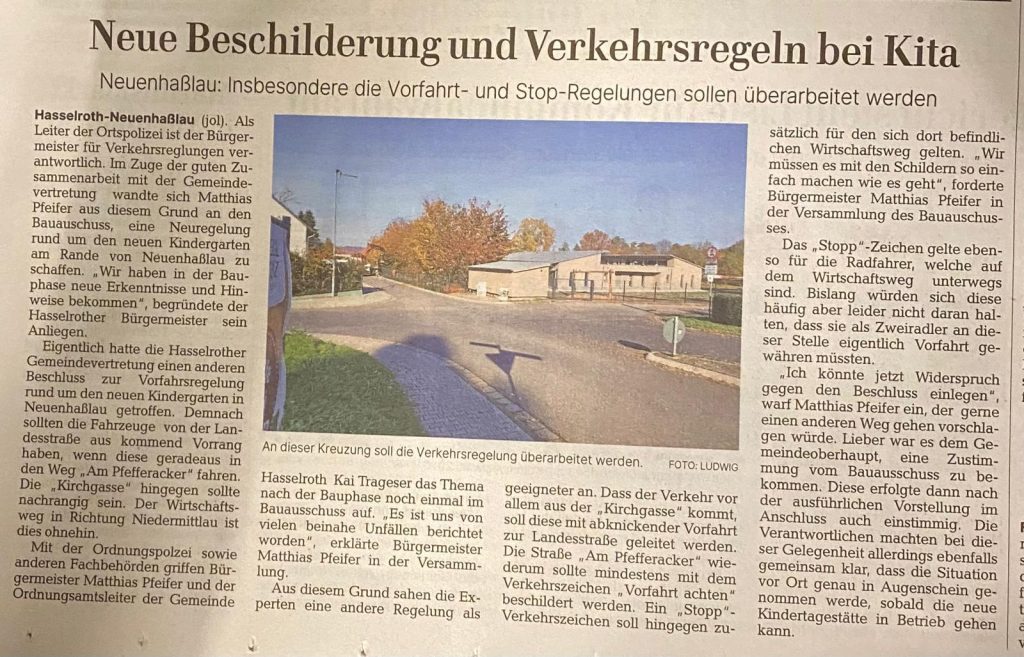 die zukünftige Verkehrsführung an der neuen Kita in Neuenhasslau.