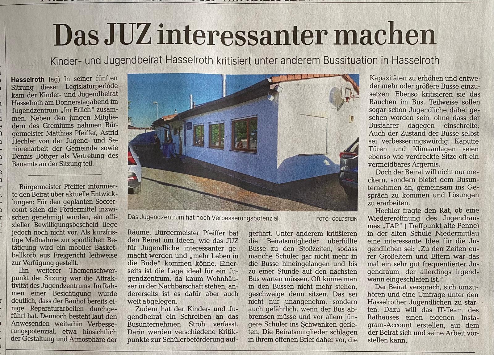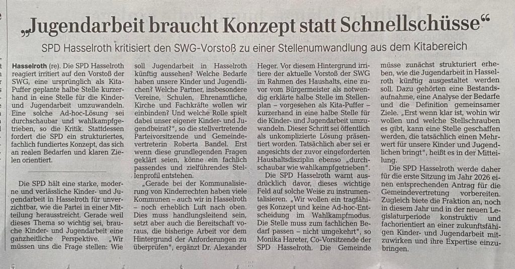 Investition in unsere Jugend – Unverständnis über die Sichtweise der SPD Hasselroth