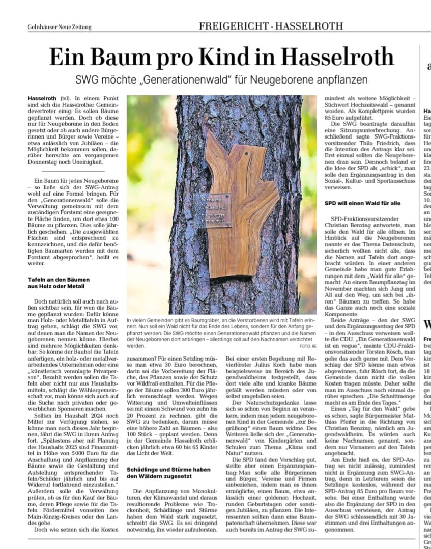 Hier haben wir in der Gemeindevertretung die beiden Anträge „Bezuschussung und Förderung bei Benutzung von Stoffwindel“ und „Umsetzung eines Jugendfreizeitkonzepts für Hasselroth“ gestellt. Für die Freizeitgestaltung unserer Hasselrother Jugendlichen gibt es derzeit zwar schon diverse Angebote, aber es ist hier unserer Meinung nach noch „Luft nach oben“. Dieses Thema ebenso wie die Fördermöglichkeiten bei Nutzung von Stoffwindeln wurden bei unseren Bürger-Stammtischen im letzten Jahr immer wieder von den Bürgerinnen & Bürgern an uns herangetragen. So entstehen aus einem miteinander „babbeln“ gute Ideen für Hasselroth !