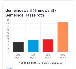 Nach dem ersten Ergebnis der Trendwahl sieht es so aus, dass die SWG Hasselroth wohl weiterhin die stärkste Kraft im Hasselrother Gemeindeparlament sein wird. Darüber freuen wir uns sehr !