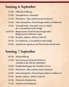 Die zahlreichen Besucherinnen & Besucher hatten zwei Tage Gelegenheit, in die mittelalterliche Welt einzutauchen und durch das tolle & umfangreiche Rahmenprogramm Einblicke in die damalige Welt zu erhalten.
